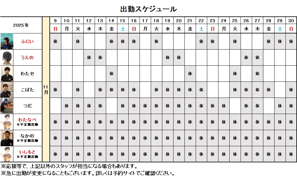 11月後半、出勤スケジュール